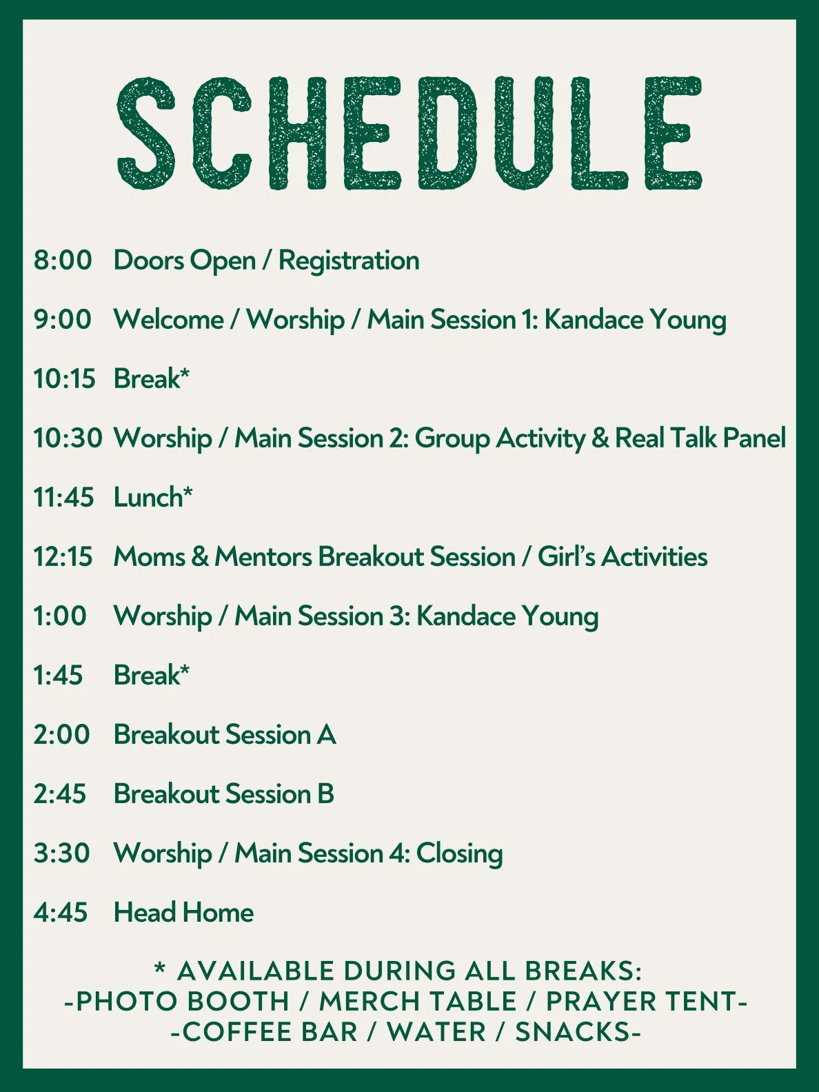 We are so grateful for your willingness to serve. We could not do this without you! We will take a volunteer group photo during the lunch break after the attendees have made it through the line.
